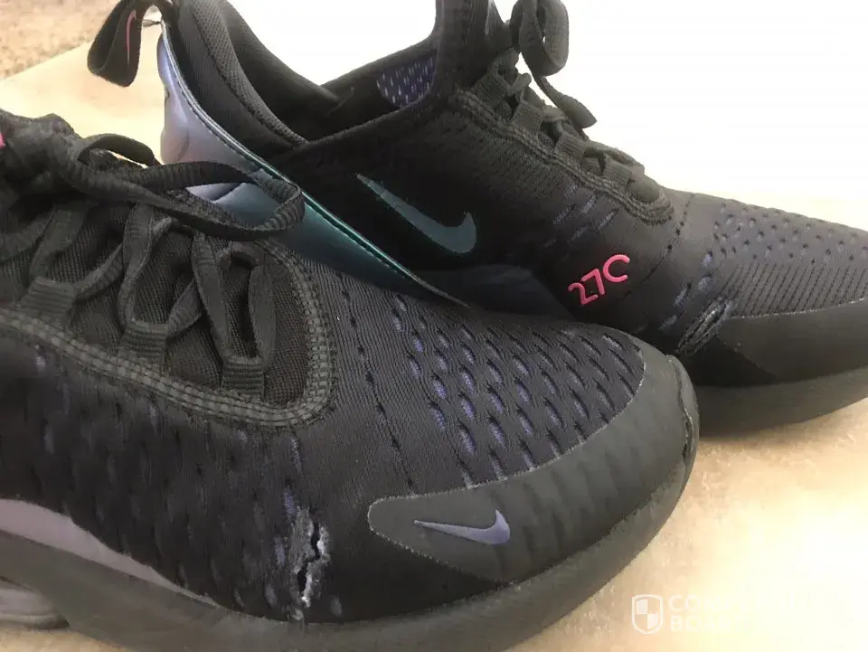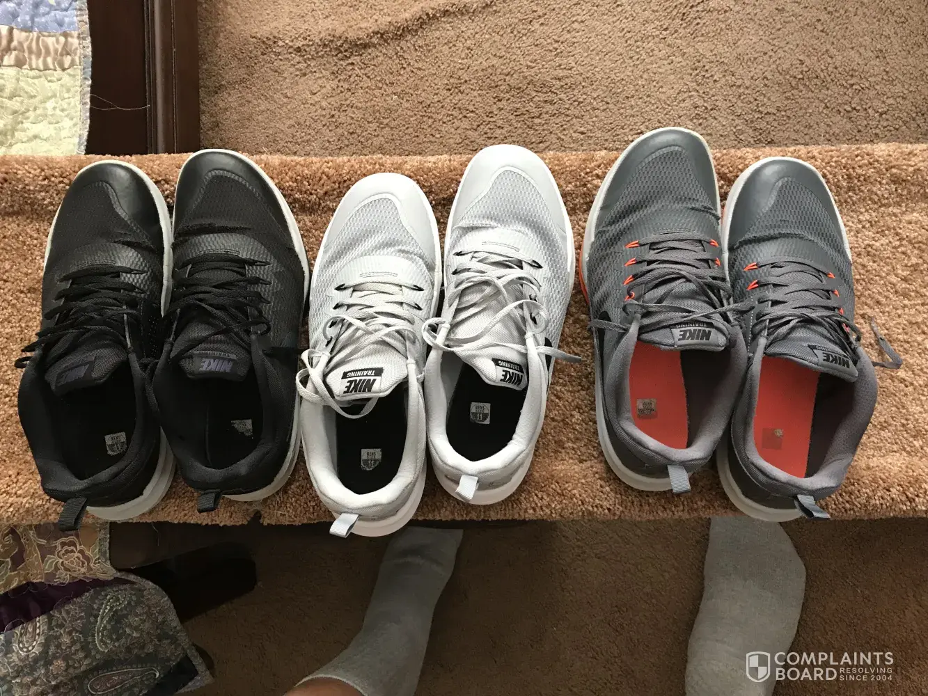 I purchased a pair of sneakers from an Nike outlet in Florida while on vacation. They looked nice and were comfortable when I tried them on. After wearing them I noticed I kept tripping. After some thought I realized they are flawed. All I wear are Nike, also buying them for my toddler. Have never encountered this issue before. Please next time dispose of flawed shoes rather than sell them to the public, I almost fell multiple times.