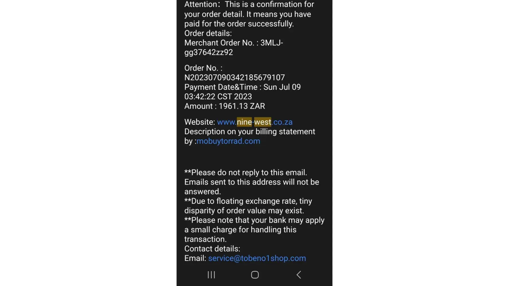 I ordered and paid for shoes from Nine West South Africa and it turned out to be a scam website from Tobeno1shop. This i only learnt on after confirmation when goods were said to be shipped from China. Nine West is supposed to have stores and warehouses in RSA.