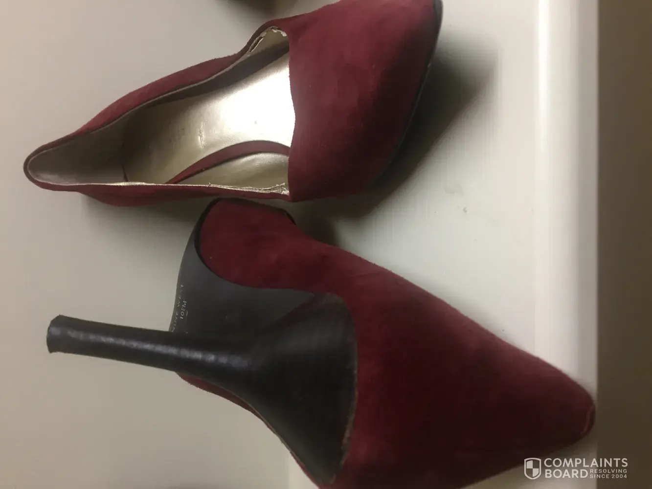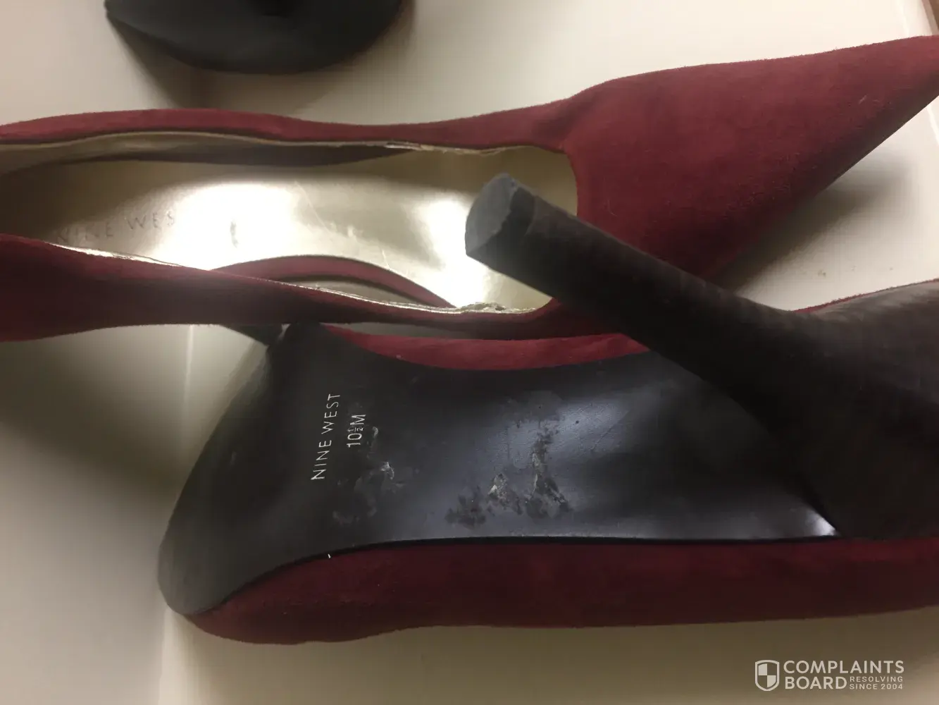 I bought a pair of plain black pumps from my local Macy's. After wearing the shoes no more then three times, the inside lining began to rip apart. I only wore them to work and I am seated most of the day.They were never wet and I never wear heels without stocking or hose either. There is no reason these shoes should have began to break down so quickly. I have always enjoyed Nine West shoes, but these were very disappointing and I will most likely not be buying another pair form this shoe company.