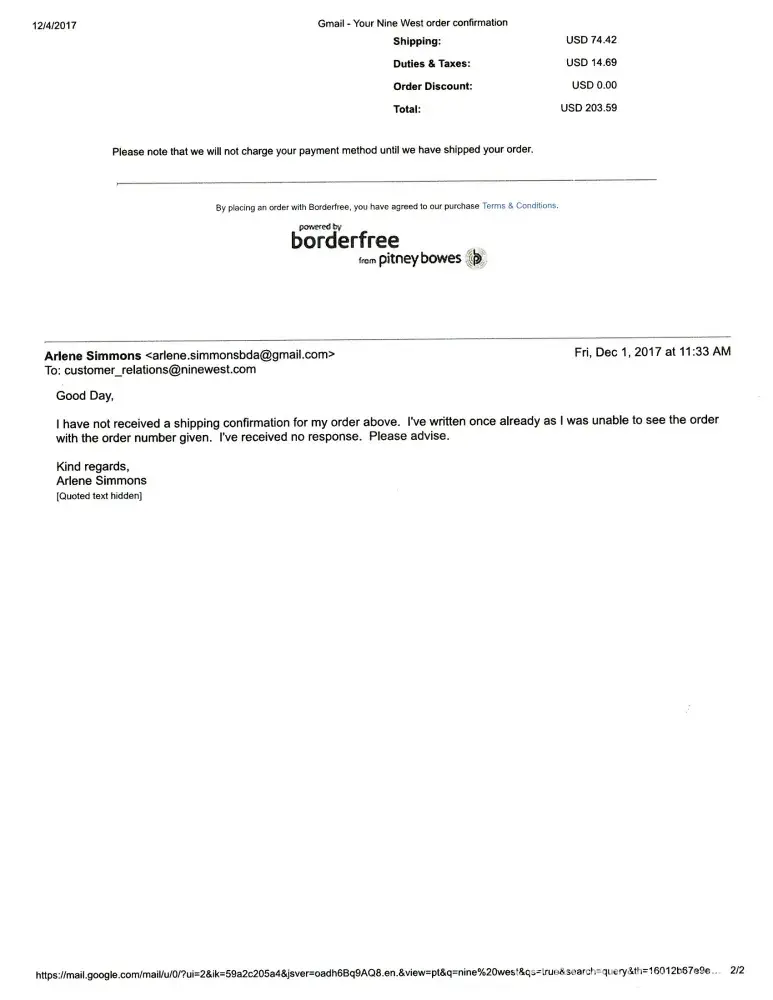 - 6 Jan 2017, I sent email to Nine West. Your staff replied my email but it is not helpful.