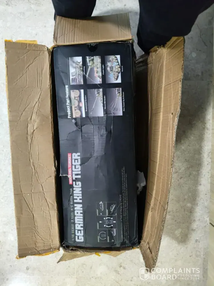 When my package arrived, the entire packaging was damaged, including the box that was inside the package. After careful inspection, product within (RC Tiger II) was cracked and damaged. Despite there being a fragile sticker pasted on the box, I am appalled by the state of the package when it arrived, and am disappointed with the handling of my package by your agency during the delivery process. I would like an urgent refund for my package.