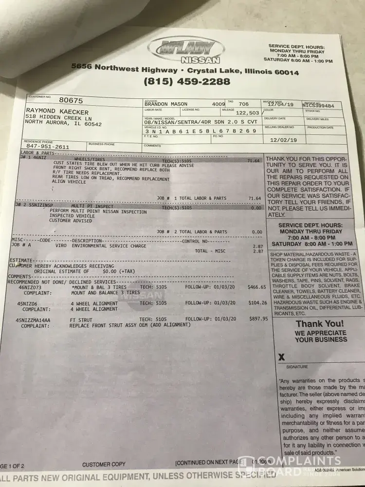 8. The light flickering issue started after the alternator and battery was replaced by Nissan Go [Edmonton South] and they could not fix the issue and still I have to pay was one of my concern. The other concern that I have is that there should be some issue because of why the lights are flickering which needs to be fixed. Could you please give me a solution for this. I usually travel with my family and have a son who is just 3 years old. I bought this car so that i can do adventurous drives. I do not want to be stuck in the middle of no where.