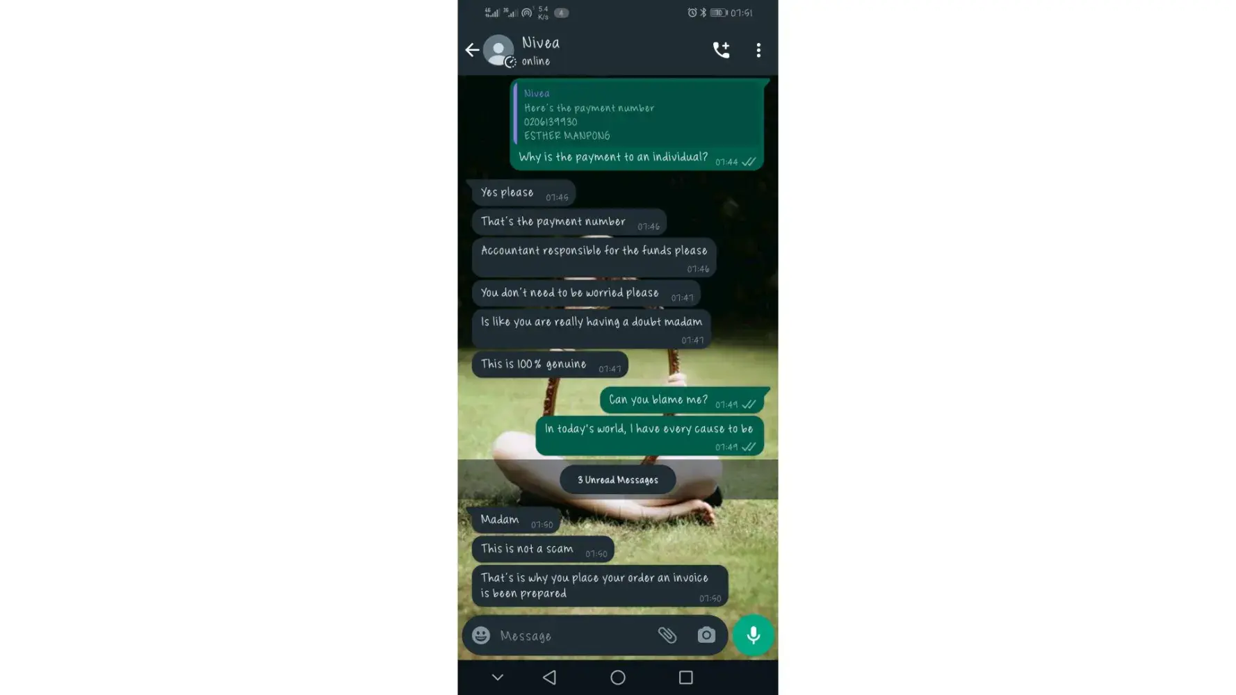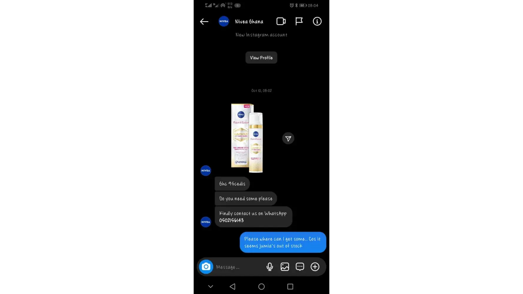 I tried to order for a luminous 630 serum and I chanced upon their ig account, their swift response initially convinced me of their genuinity, however, upon payment I noticed they might be a scam. I have attached screenshots of my whatsapp and ig page chats.