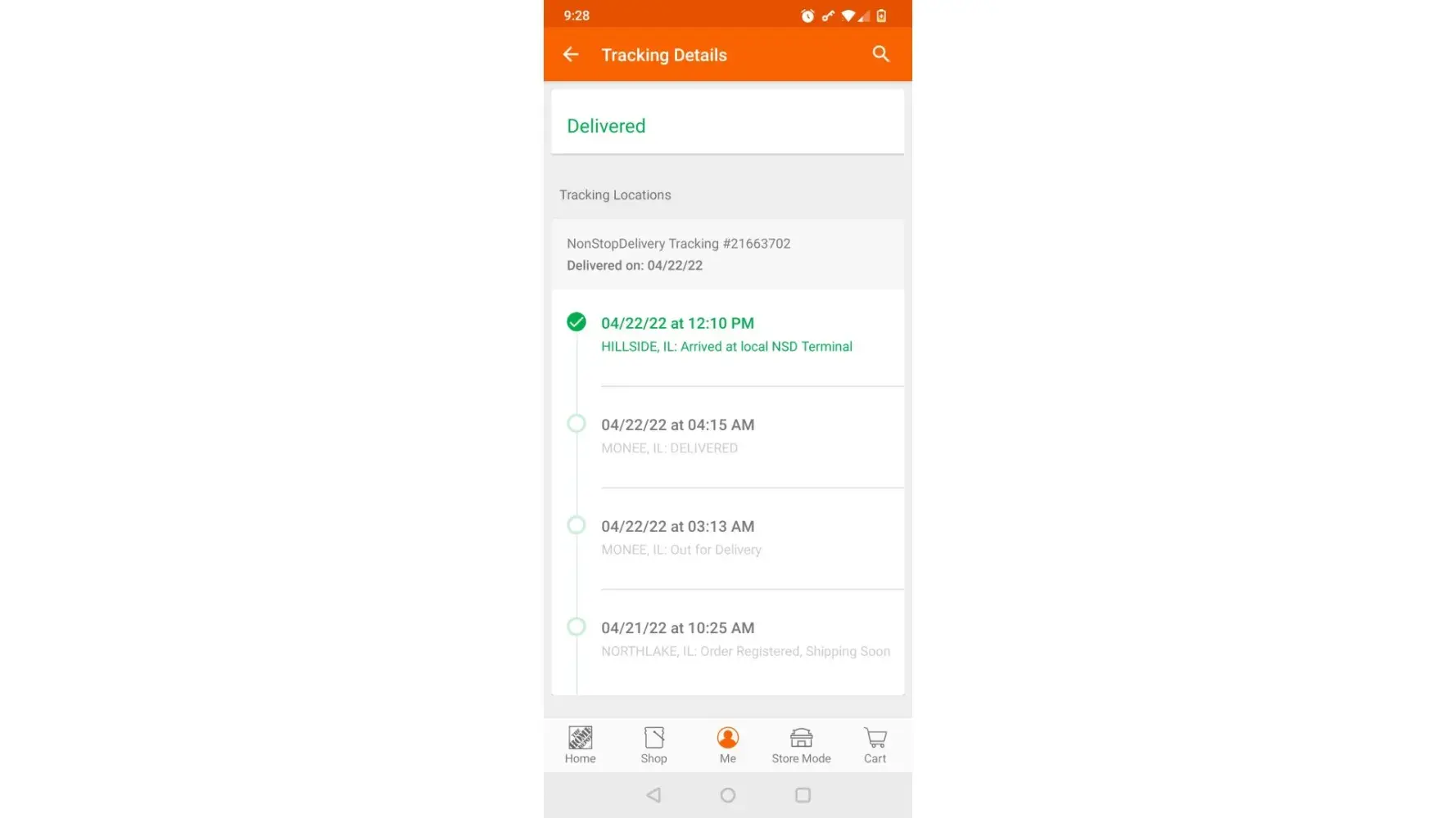 I ordered two different items from homedepot to be del.to my home the first item I cancelled because it sat at Nsd 11 days after due date this next item was suppose to be delivered today 5/24/22 as per their audio email to me when it didn’t arrive I had a chat with a care customer rep at Nsd after waiting 15 mins for her to investigate she came back and said it was del. on 5/19/22 I told her I don’t know who you del. To but it wasn’t me after another 5 mins she came back and asked for my tracking number which I gave to her 3 or 4 mins later she said they were going to do a dock check and would get back to me in 72 business day hours.Nsd is the most incompetent delivery service I have ever had the unfortunate luck to do business with.homedepot uses them ad that’s a disgrace they have lost my business with them