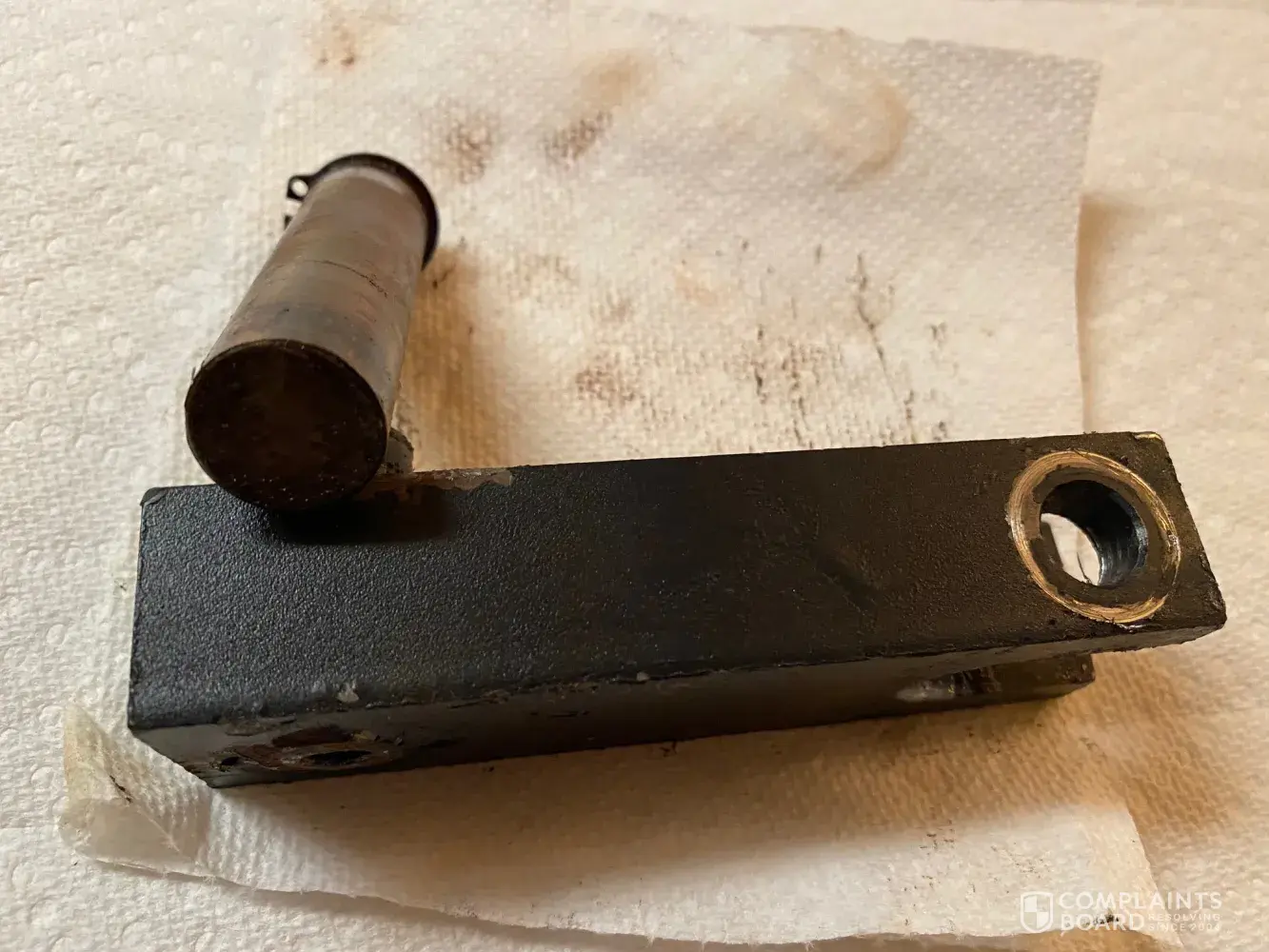 rod sheered off from bracket at snap ring slot, causing a dangerous safty issue during use. This is definitly a part defect and safety issue, this should not be a customer responsibility. Replacement part plus shipping cost $134.19. I have paid for this replacement part, but would like a refund!... Please advise