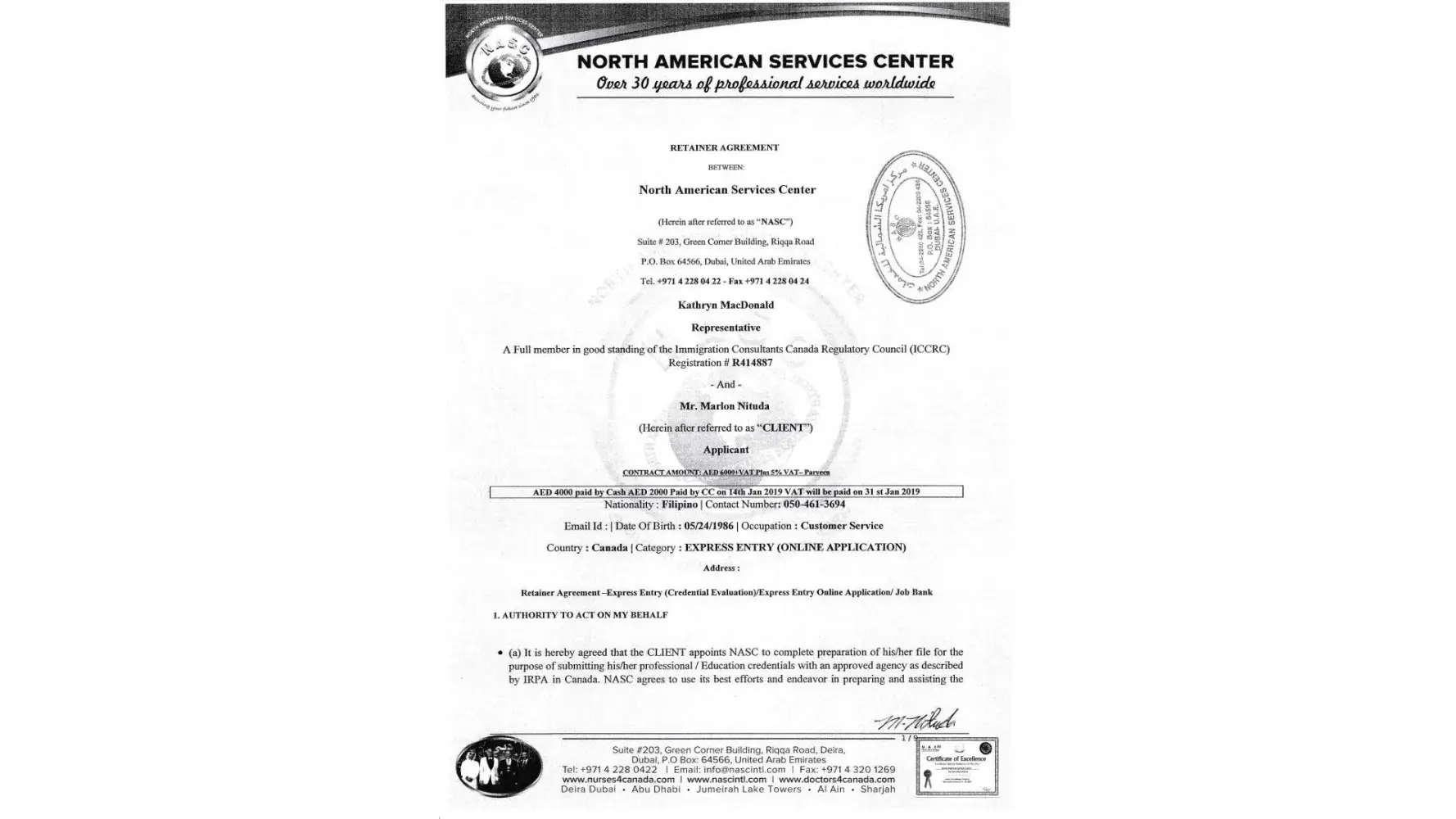 I, too, am a victim of NASC. I completed all of the requirements, including the payment of 11,000AED+2000AED, WES, and IELTS. They have done nothing to pursue my application for Canadian residency. They terminated my contract and informed me that if I wanted to reactivate, I would have to pay again. This company has done nothing but take hard-earned money and given nothing in return, despite their promises. I simply want a better life for my family. NASC should refund all of my money. I wish someone could assist us in getting our money back.