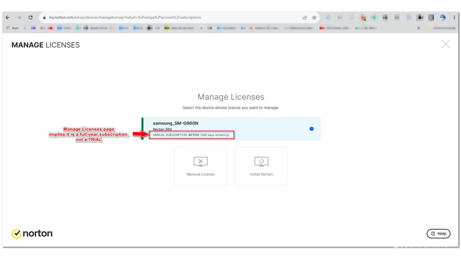 On the Manage Licenses page it says it's a full-year subscription, not a 14-day Trial. This is incorrect. See screenshot 2.