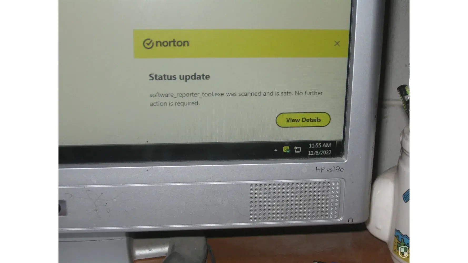 NO ERROR, CLEAR AS DAY! THE BOTTOM RIGHT CORNER OF THE PHOTO! Norton pop up! yellow top!