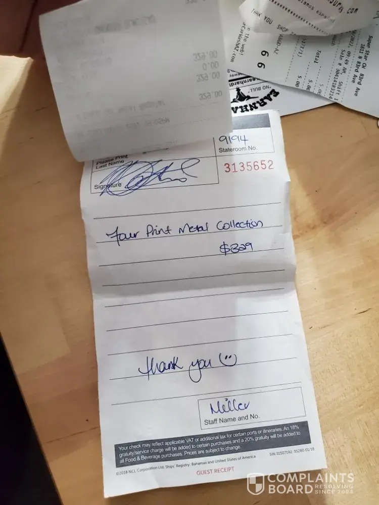Put a complaint in, whilst on the ship, nothing has transpired, gave me a number and nothing happened. Since returning filed a complaint a month ago, no response and told it has not even been opened as yet.