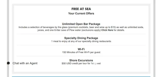 -$50 dollars for the first guest toward shore excursions