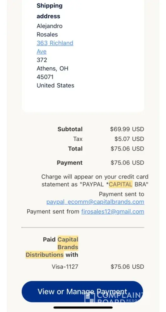 shipped to: Alejandro Rosales, 363 Richland Ave 372, Athens OH 45071