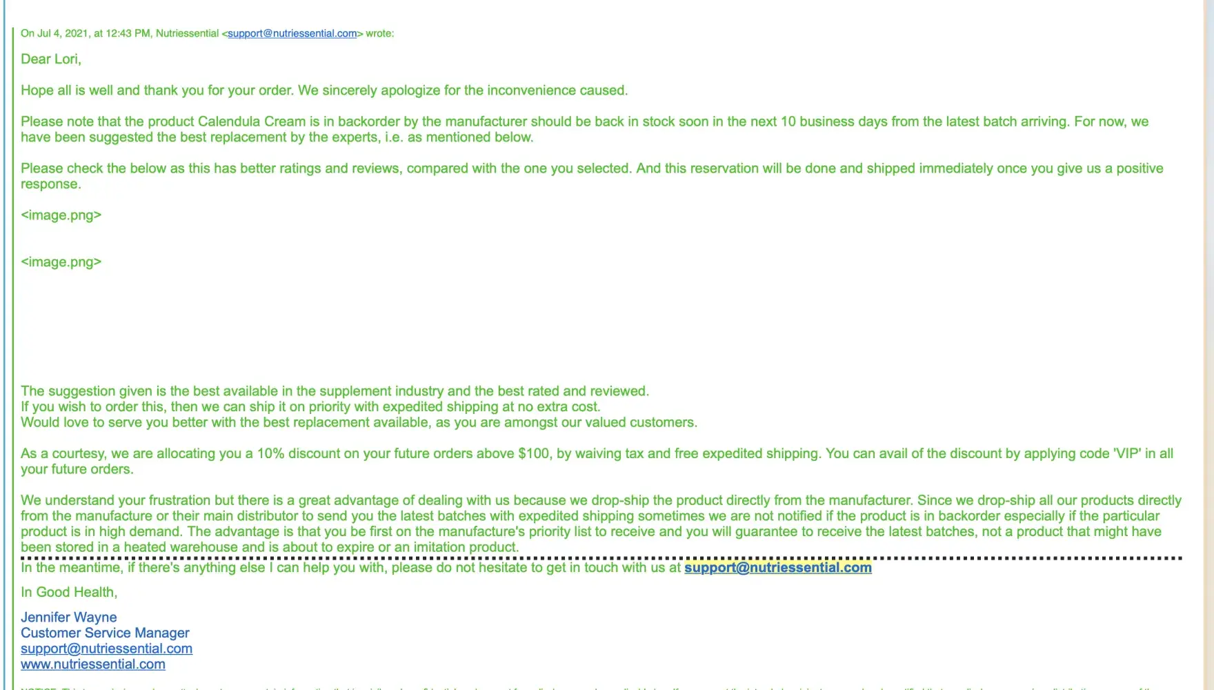 I ordered 3 products in November that were recommended by my homeopath for a protocol. She wasn’t familiar with this company, but they had one item I needed to have on hand so I decided to give them a try. Nutriessentials emailed to inform me one item was on back order and would be sent within the month. I cancelled the two items that were urgent and waited for the one that was on backorder because I could wait one month for that item. A month later it was still on back order and I needed that item so I had cancelled it and went with another company.