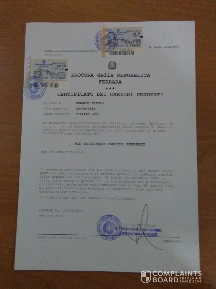 Dear Annalisa Zirelli, alias Annlee, this is my Certificate of Pending Charges. Can you post your Certificate? So all people can understand who is the trickster.