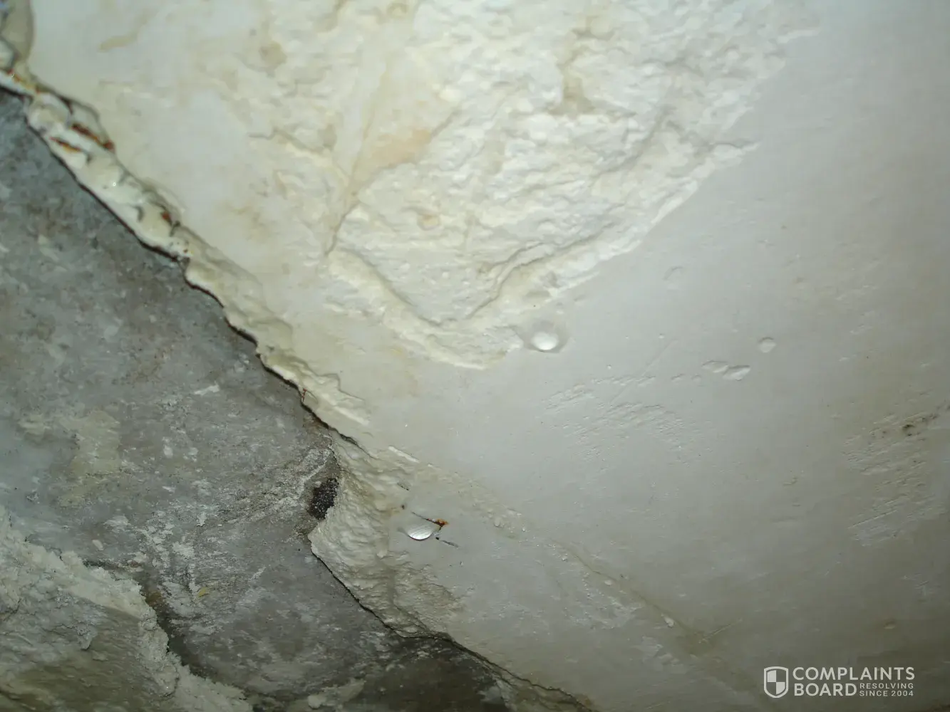 3 - july 6 2010 arrived - the ceiling was so messed up by then, that plasterer jerry johnson said " I dont know what i'm doing yet" and took a look at the ceiling and says "he can't do anything about it. " he stated you need a to set an appointment for brick layer. We've waited nearly a year and nothings been done!