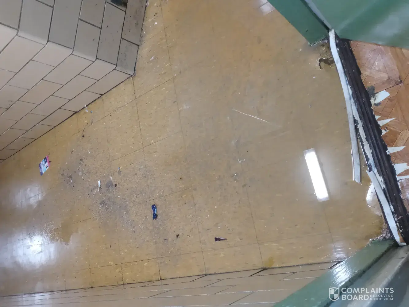 I put it in 3 weeks ago at washington houses and they have not responded or bother to clean generally so there is powder and grime on the floor/stairs. I was sneezing when 8b tenant poured water on it