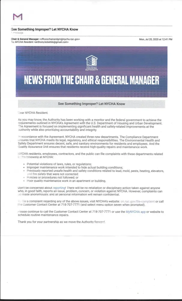 My name is tony bobet I resided at 1710 seward avenue, apartment#5-g, bronx, new york city 10473, I filing an complaint two places. First, complaint to new york city housing authority soundview houses, located at 1720 seward avenue, bronx, new york city 10473. Another place is the cdc: centers for disease control and prevention they're located on 1600...