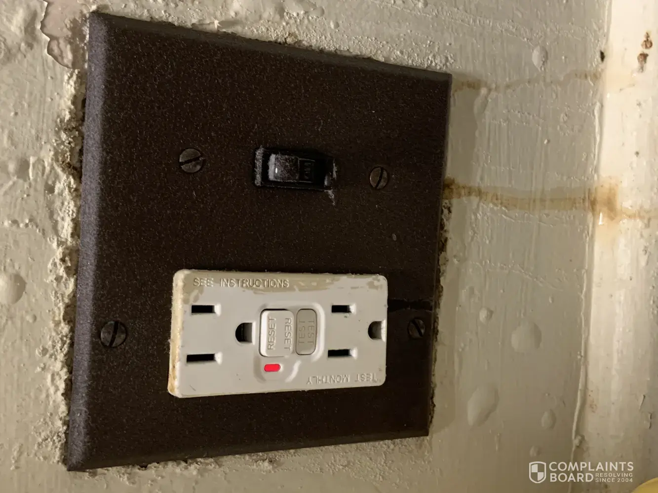 Read full complaintWater leak to electrical outlet to fallen cabinet