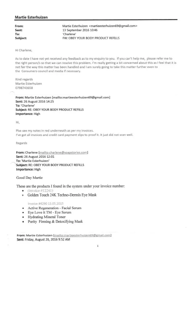 It seems your complaint should be for “SoapStories”, not ObeyYourBody, because it is important to mention that we are the wholesaler and manufacturer of ObeyYourBody products, and you encountered one of our independent retailers at Menlyn Shopping Centre.