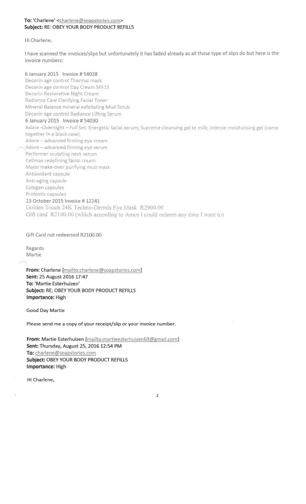 I would like to see them refund me for the remainder of products not supplied to me as well as the R2100.00 gift voucher not redeemed.