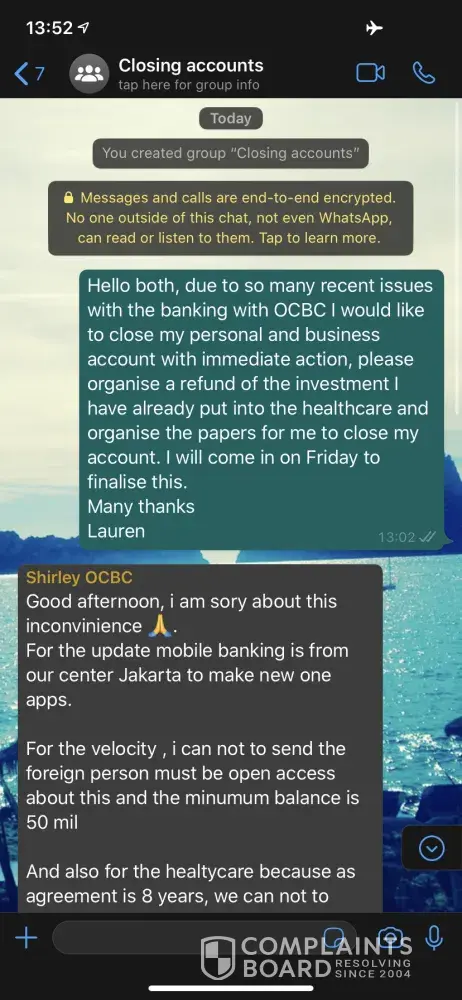 Many of my local colleagues told me OCBC handling of complaints was terrible, I was not too sure until it happened on me lately. No wonder their customers run away and even internal staff leaving frequently. This bank is a joke and you do not know who to believe with them. Best to avoid OCBC forever