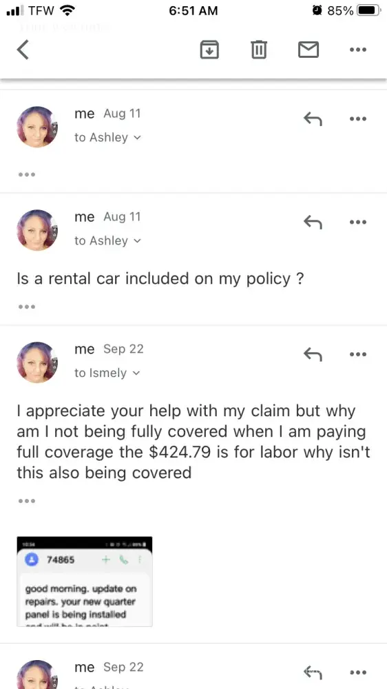 Read full complaintIgnored for weeks after accident, no callbacks