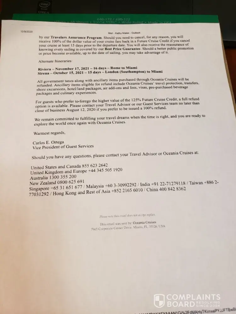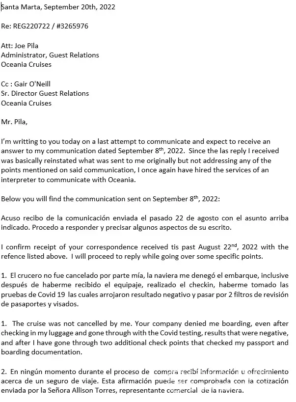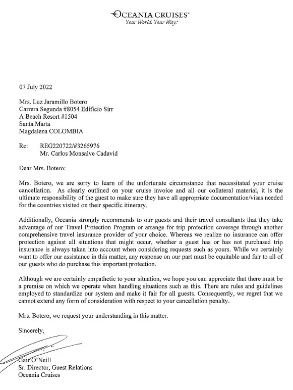We have tried to solve an issue regarding the cancellation of a cruise booked REF: REG220722/#3265976.