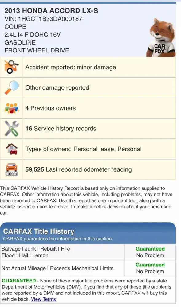 false car fax report
