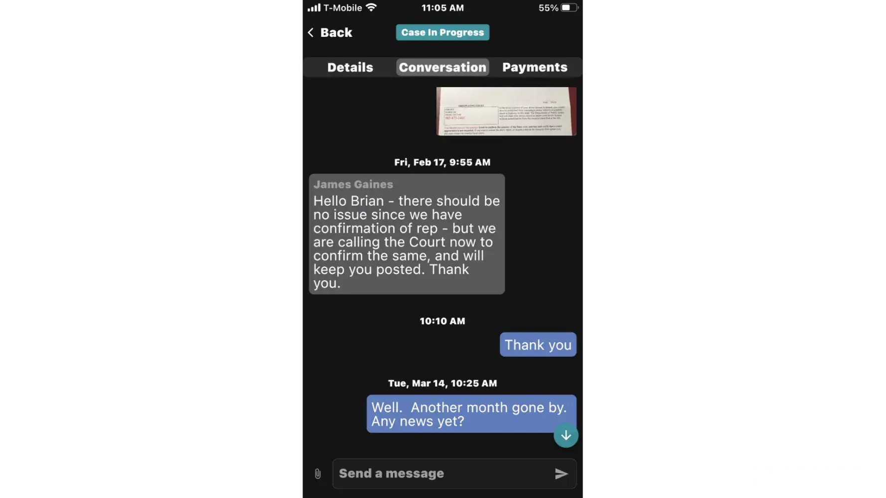 I hired them and 6 months later I got a letter in the mail saying I am about to have a warrant issued for my arrest. I have had one communication from James Gaines saying should have a decision next couple weeks. That’s 6 months into waiting. Called the courts and they say zero representation has been sent. How can there be a decision coming if there isn’t any representation? I am out $120. Asking for a refund.