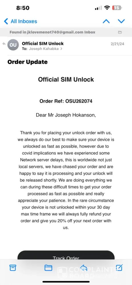 Disappointing Experience with Official SIM Unlock: Customer Warns to Avoid Them Altogether
