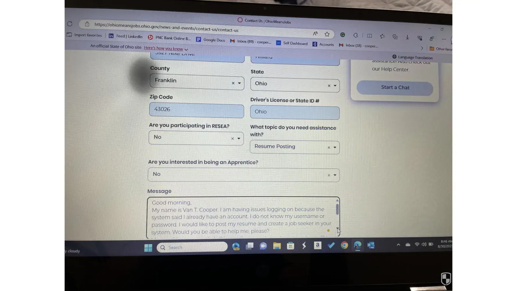 My name is Van T Cooper last four is 1014 and my email is [protected]@hotmail.com. I am writing to your office today with my concerns about my case and how it has been handled. I do know that I am not the only one who is unemployed or going through a hard time. However when I am doing what is asked of me by the state who makes the judgment on if I get paid or help from your office?