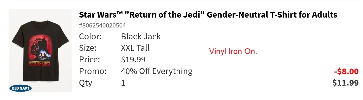 Old Navy produces Screen Printed graphic t-shirts and other apparel, it's literally the only reason I purchase anything from Old Navy, but lately I've been getting nothing but vinyl iron on garbage. There's no mention in the description, no way to review so other's won't buy this trash, and customer service doesn't care that you're scamming customers. Screen printed shirts last YEARS I have several shirts that I still wear to this day purchased from Old Navy that were screen printed, but the shirts I've purchased recently with iron on vinyls last a year(at best) if treated with the absolute utmost care, there needs to be some mention in the description whether it's in product details or materials & care about screen printed or vinyl iron on because if I'd noticed it was a vinyl I never would have purchased any of them.w