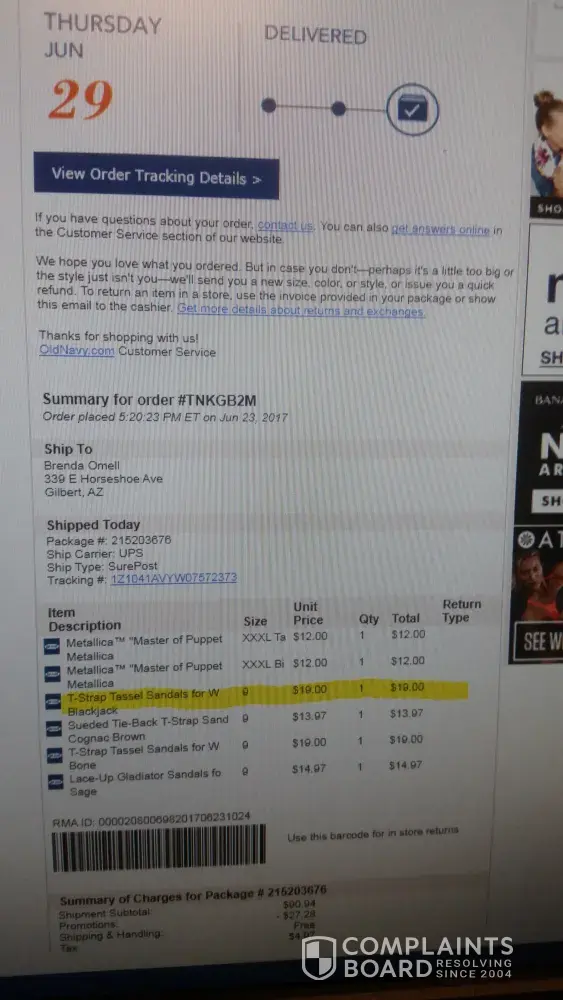 September 23, 2017 oldnavy.com order # TN38VSS