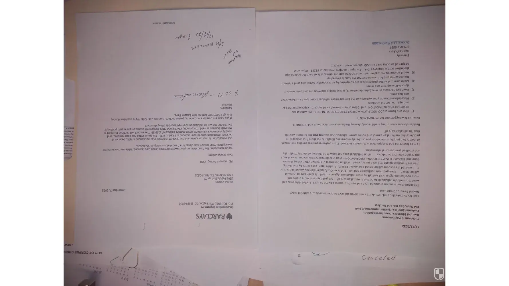 Since this happened, I become so disgusted with everything I closed my Barclay account because no one was doing anything for me. I’ve spent a lot of money and accumulated a lot of points and then this happens to me and no one seems to understand me or want to help me. When I first called on August 31, 2022, they told me it can take up to 90 days for any answers and til this day I have not heard from one Old Nay representative. Can someone please look into this.