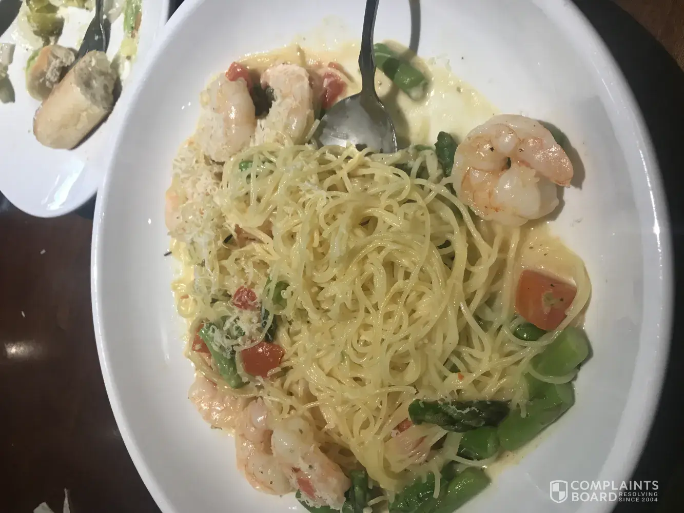 I ordered shrimp scampi and questioned the portion size. It did not fill the serving bowl. I have pictures. I asked for the manager, at which time he came and stated that this is the correct portion and it reflects in the price. I told him I wasn't worried about the price, I felt the portion should've filled the bowl. He stated that this is it. He was very rude and then just walked away. Our entire experience there in June 2nd was very unpleasant unlike our previous experiences. Our salad had 2 wedges and dressing This isn't how our salad is supposed to be presented. When I asked about that, our waitress stated that there was a rush in the kitchen and she apologized. Our whole eating experience that night was unpleasant.