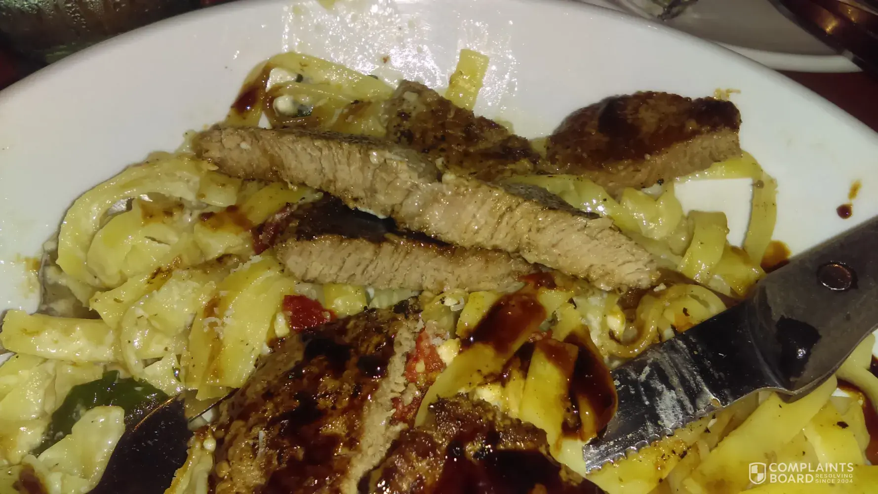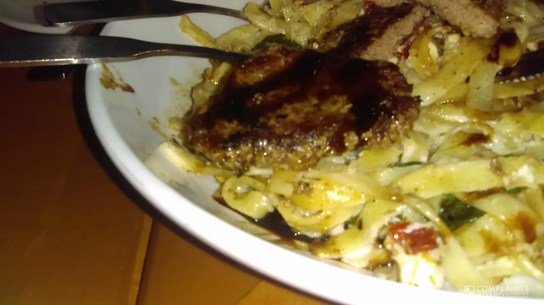 I ordered the Cannelloni with Giant Meatball with Alfredo and Marina Sauce. The television advertisement made me WANT this dish. The picture in the Menu made me WANT this dish. When the dish arrived, it looked nothing like the picture. It looked more like Lasagna. The cheese had completely oozed from the noodle all over the dish. I requested the Marinara Sauce on the side - thank goodness. Merging the Alfred and the Marinara Sauces would have ruined all the flavors. The Marinara sauce tasted like warm ketchup. The meat ball was a total disaster. it looked uncooked and tasted the same. I could not eat the meat ball I scooped up as much of the cheese as possible. The noodles were much too firm and flat (not circular). Thank goodness for the salad. Sorry, I could have taken a picture.
