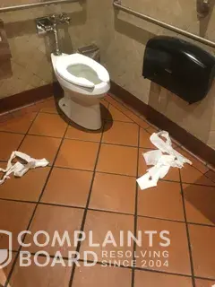 My family and I recently went and ate at Olive Garden right at the time it was opening, My sister and I went to use the restrooms and there was pee on the toilet seats and toilet paper in the toilets from the day before, also there was a dead cockroach on the floor. To me that is VERY unsanitary, if we came right at the time it was opening the bathrooms should be clean we were the only ones in the restaurant besides the workers.