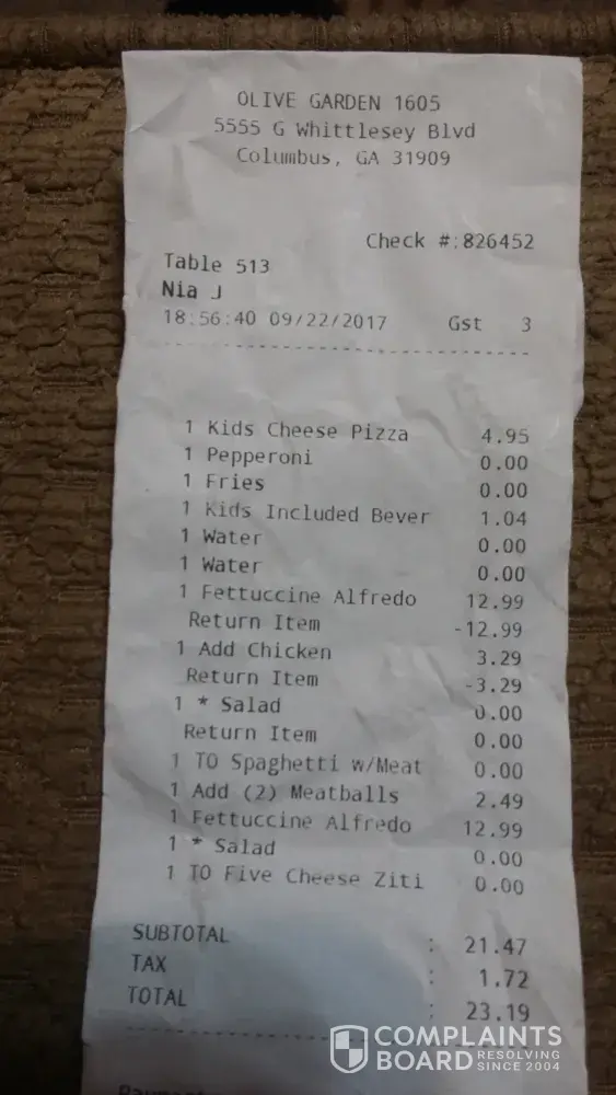 our recent visit to olive garden...