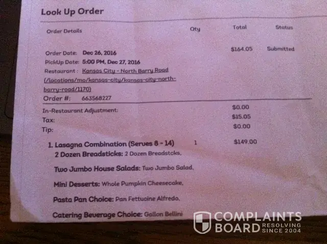 Ordered carryout combo for 8-14 .Dec 27 2016