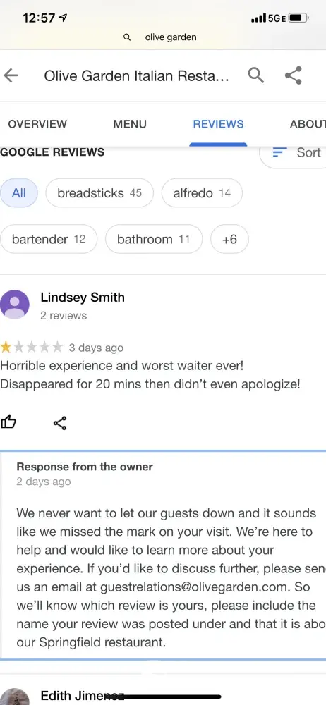 The Olive Garden in Springfield pa sucks! I will never ever go back to that location! The waiters name was Amanda. She was the worst. First we sat down and they sat us for 2 in stead of 4. When I told the waiter about getting more utensils she said sure not a problem, took our drink order and our appetizer oder. I ordered the mozzarella sticks without...