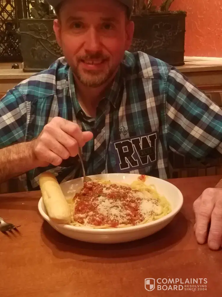 It's a 25 mile round trip to the Olive Garden in Blue Springs MO for my husband and I. Past experience has been great. We get Spaghetti and Meatballs with meat sauce. It has always been delightful in past experiences. But not on the evening. Got home with spaghetti noodles and meatballs. That's it. No sauce what so ever. Called manager explained. He offered to send a 25.00 gift card. OK, sounds reasonable. Been waiting 3 weeks. I doubt it's coming. I don't go back to places that don't take customer service seriously. I have been in the service industry for over 30 yrs. I always treat as I want to be treated. Let's see how this is handled. I will keep you updated. Thank You.