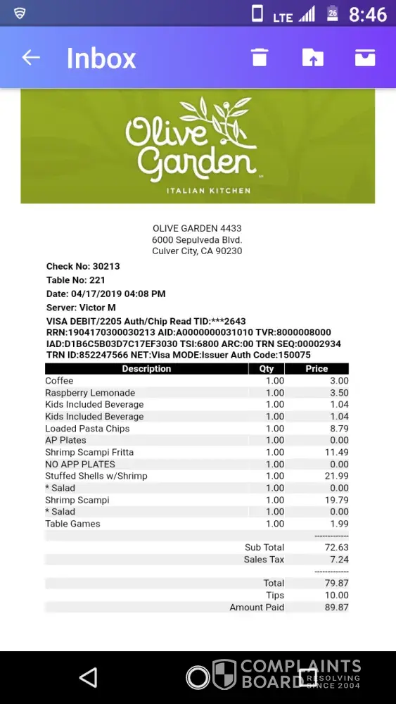 Olive Garden Complaints Page 9 of 56