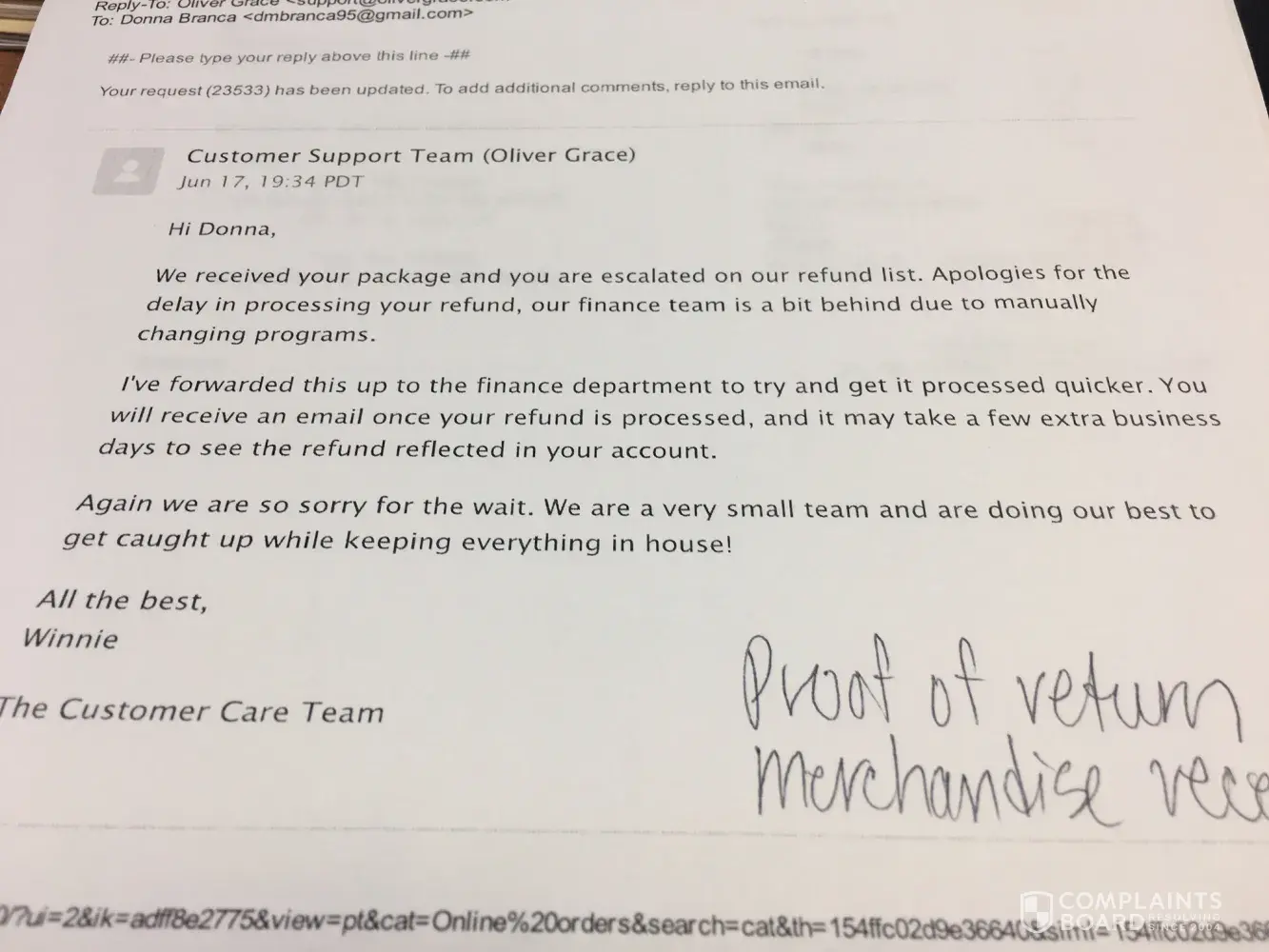 Both companies have terrible customer service and it has been a nightmare to deal with them. Never order from Oliver Grace and will be cancelling my credit card with Bank of America too.