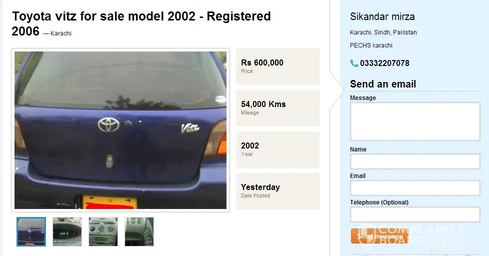 I just to want to complain here and no matter what OLX.com.PK do for me first of all i just want to make one thing clear that here(OLX) some fake ADS being published by some Cheap peoples to do frauds with other OLX users and i am one of their recent Victims.