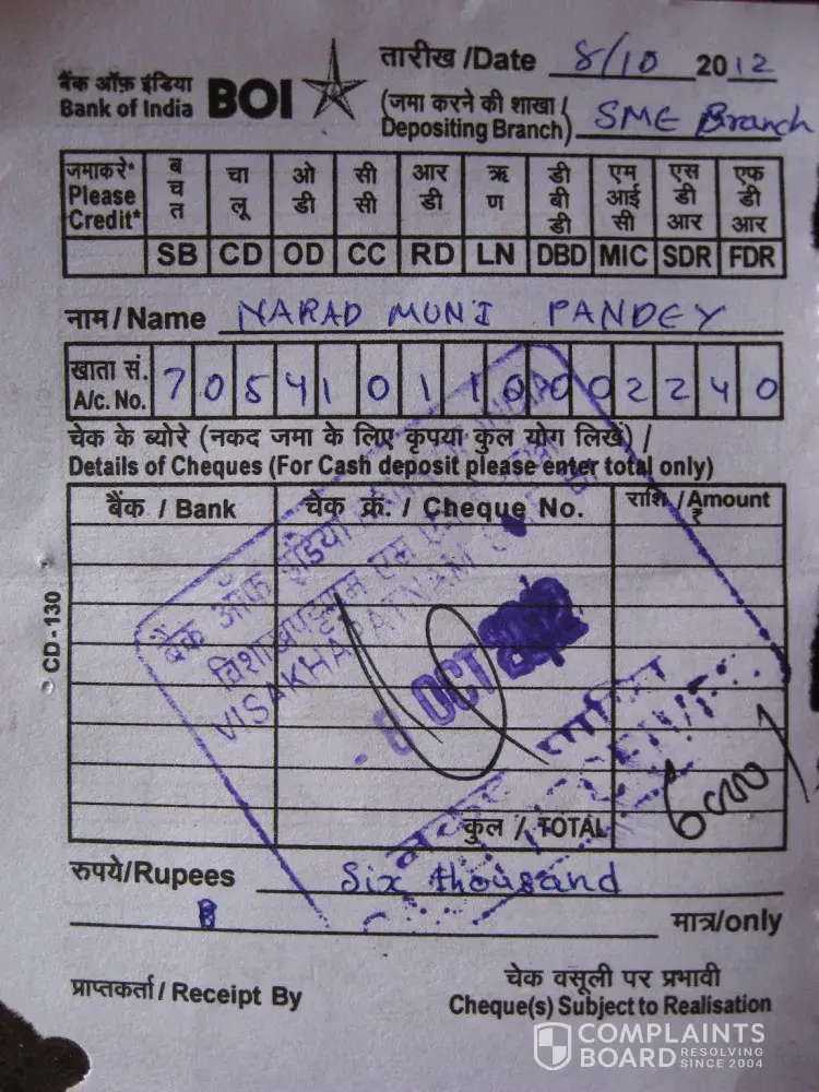 I have seen an add in Olx.com of sale of galaxy s2 at rupees 15000 he is from dehradun. And i am from visakhapatnam. He said me to send some amount initially to start the courier of the phone. So i deposited amount 6000rs in Narad muni pandey's(the a/c in which he told me to deposit) a/c. After that he said that started the process. Till 1 week he said there is a problem in courier service.But now when i am calling him he swithced off the phone.