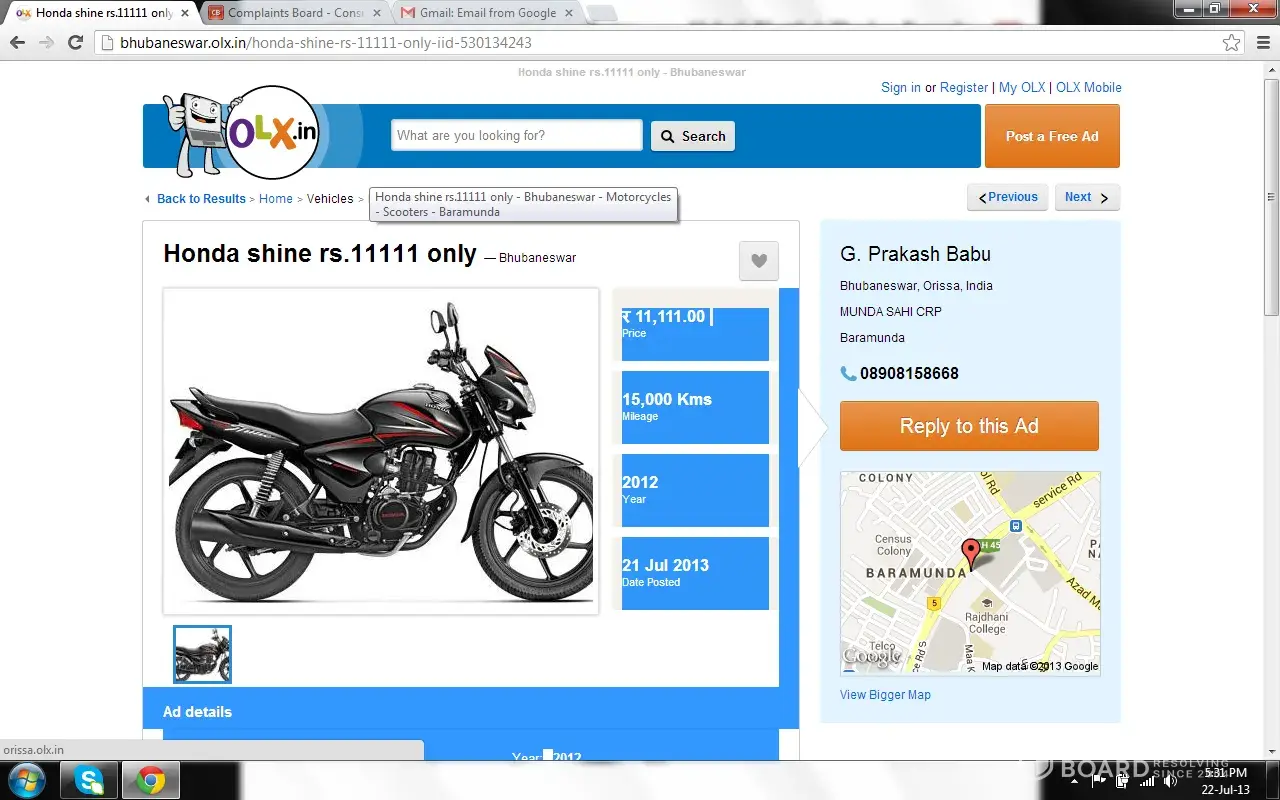 Some body use my mob no. [protected] & put a ad to sell a honda shine of rs, 11111.