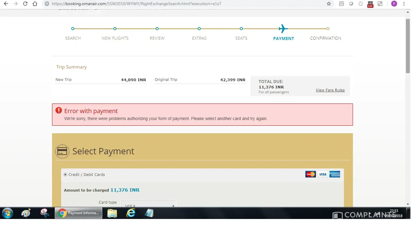 Oman Air has not responded nor refunded the double chanrge effected on 25 January 2019. Despite various phone calls and also liaising via email, the last being on 22 February 2019, there has been only silence from Oman Air.