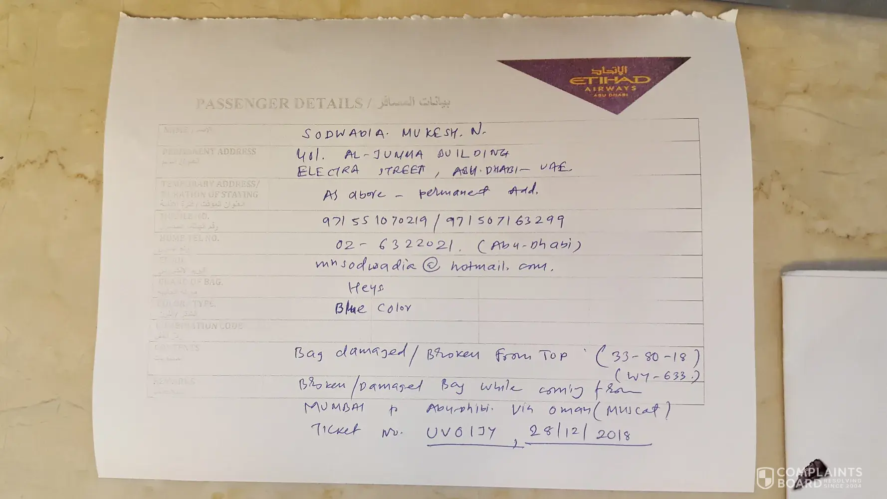 Hi, please note that my one of bag damaged while traveling from mumbai to abu-dhabi. Reservation code. Uvoijy.