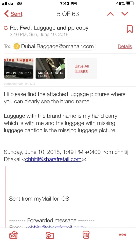 Honestly speaking I have mad more than 50 calls so far, I have personally visited dubai terminal 1 Oman air office, Danata office airport but encountered with same excuses alike we will check "we will do follow up"we have send email "so on so and here I am new to UAE spending huge money everyday to buy my needy clothes, footwear, belt and other item. Oman air staffs are very much relaxed and they are acting like nothing has has happened.