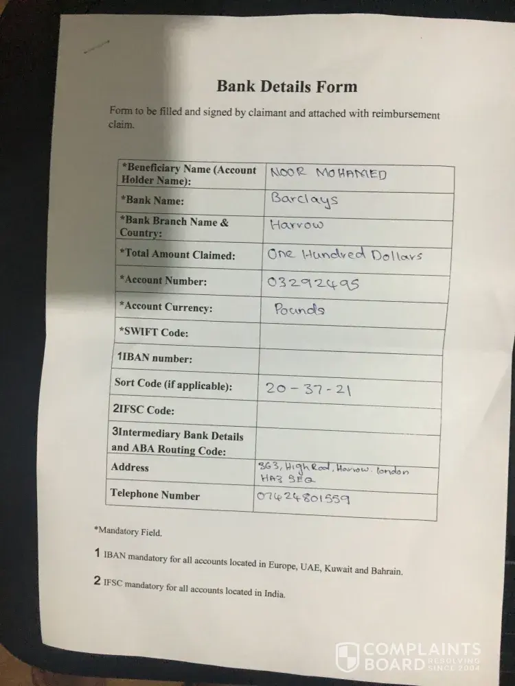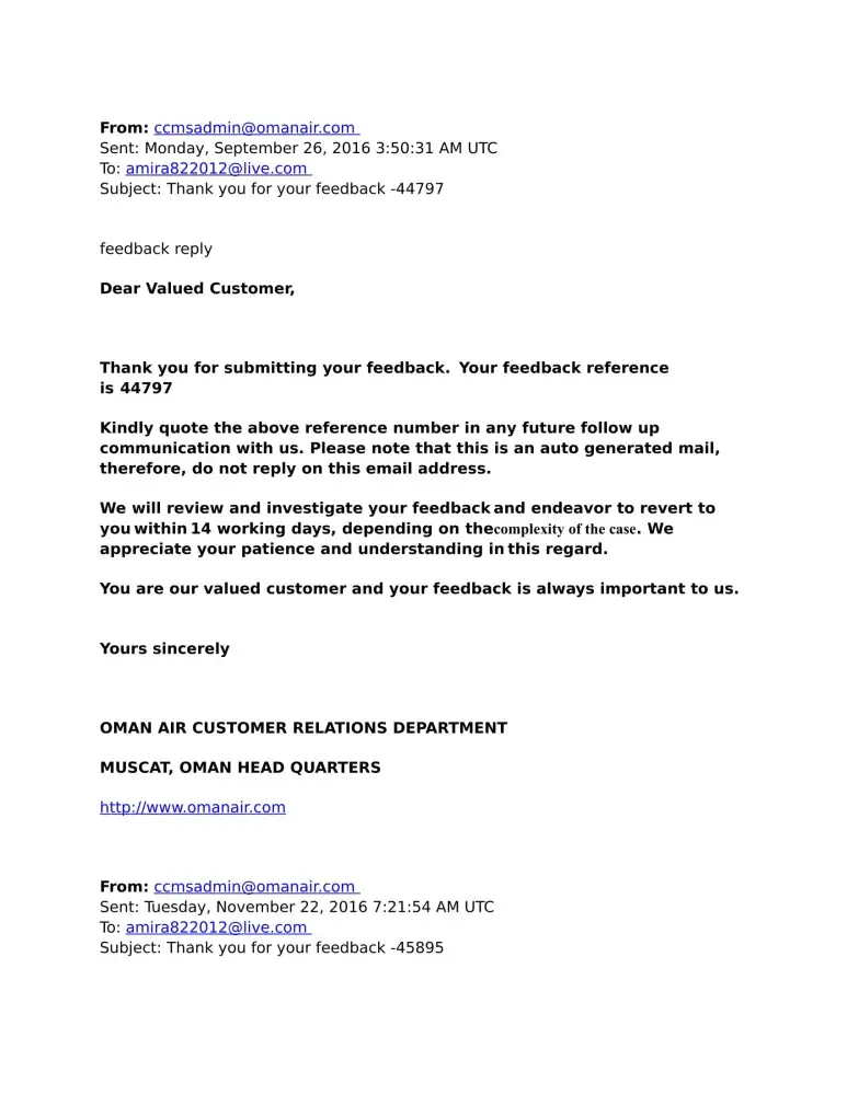 i had compensation of $100 from oman air due to the delay of their flight on 17th august 2017. thy provided me with an Email to send my Bank details to that (UK.RES@omanair.com) i did send them on 19th of august as they requested. its been about 8 days now i had no response from them. i have provided the details below