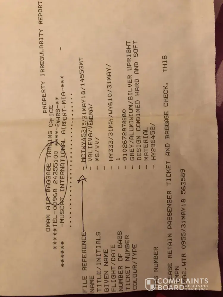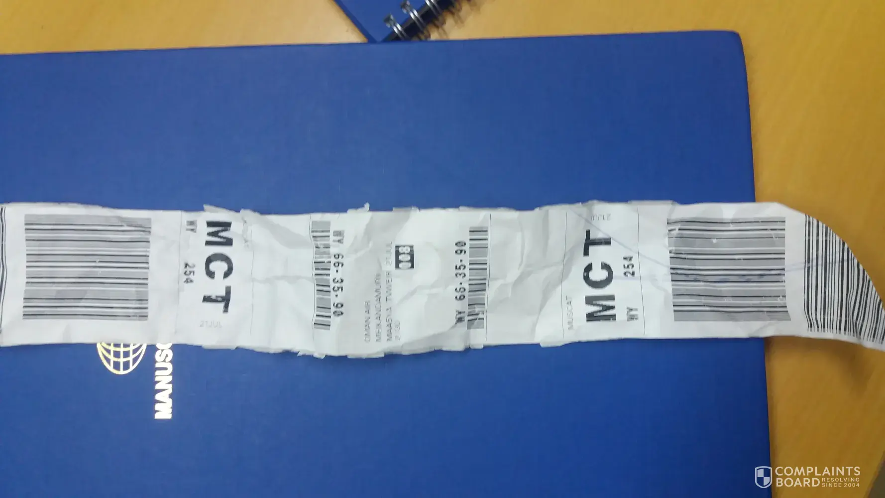 When I got to muscat airport I went straight to the lost and found baggage service and reported the missing bag, but didn’t receive any receipt for the report, I have been told that I don’t have a tag number so they can`t give me a receipt.